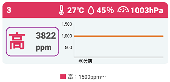 密閉空間で人の呼気などで排出されるCO₂の濃度を検知・見える化するソリューションです。